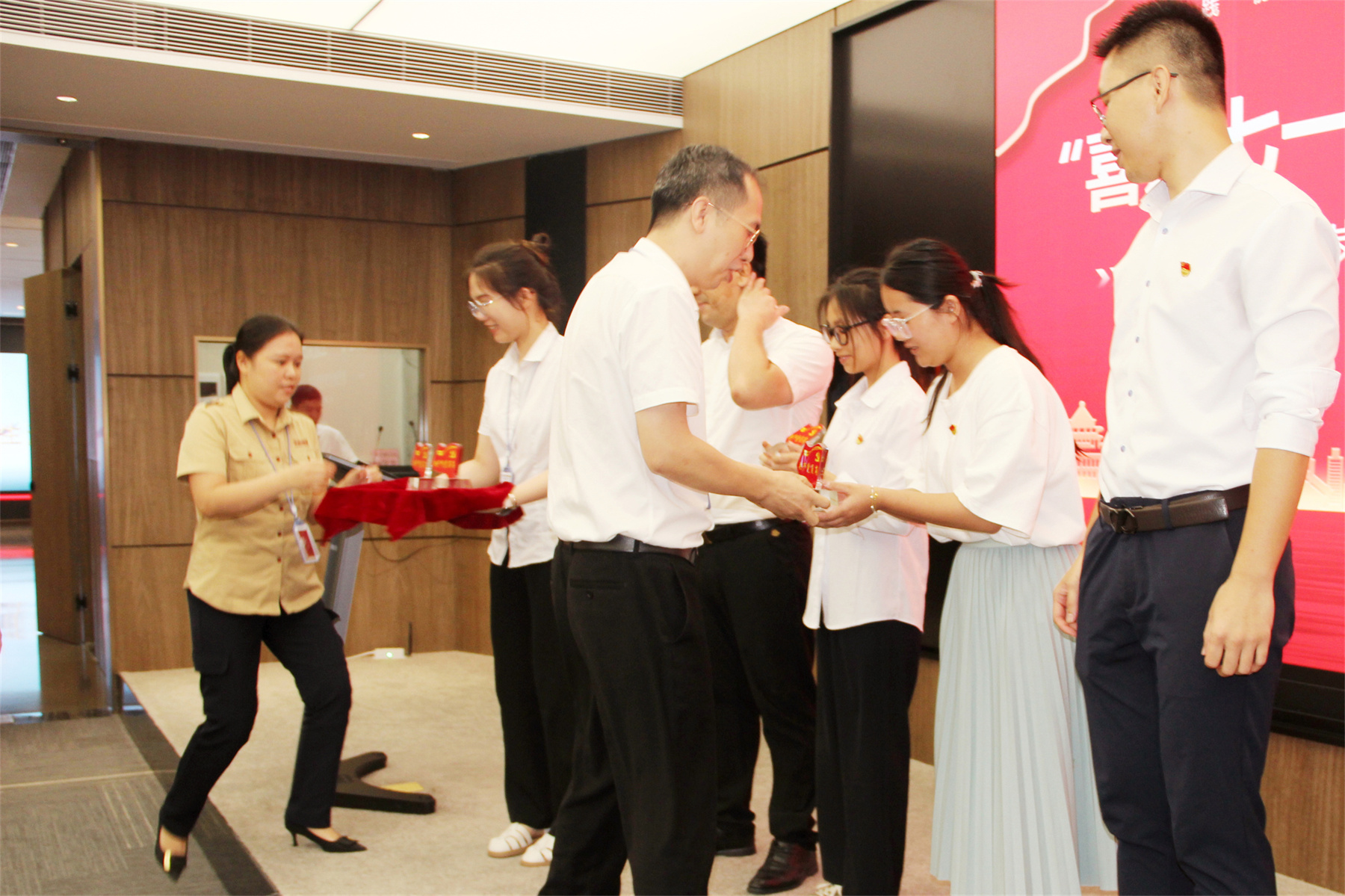 2023年6月27日,華輝黨支部開(kāi)展“喜迎七一”主題黨日活動(dòng)。黨員們共同觀看黨史教育片,唱紅歌《沒(méi)有共產(chǎn)黨就沒(méi)有新中國(guó)》,授予新入職黨員“共產(chǎn)黨員崗位牌”,并結(jié)合工作實(shí)際和個(gè)人體會(huì),暢談如何立足崗位發(fā)揮黨員的先鋒模范作用。黨員們紛紛表示:要深入學(xué)習(xí)貫徹黨的二十大精神,立足本職,創(chuàng)造一流業(yè)績(jī),在自己的工作崗位上切實(shí)發(fā)揮先鋒模范作用。
