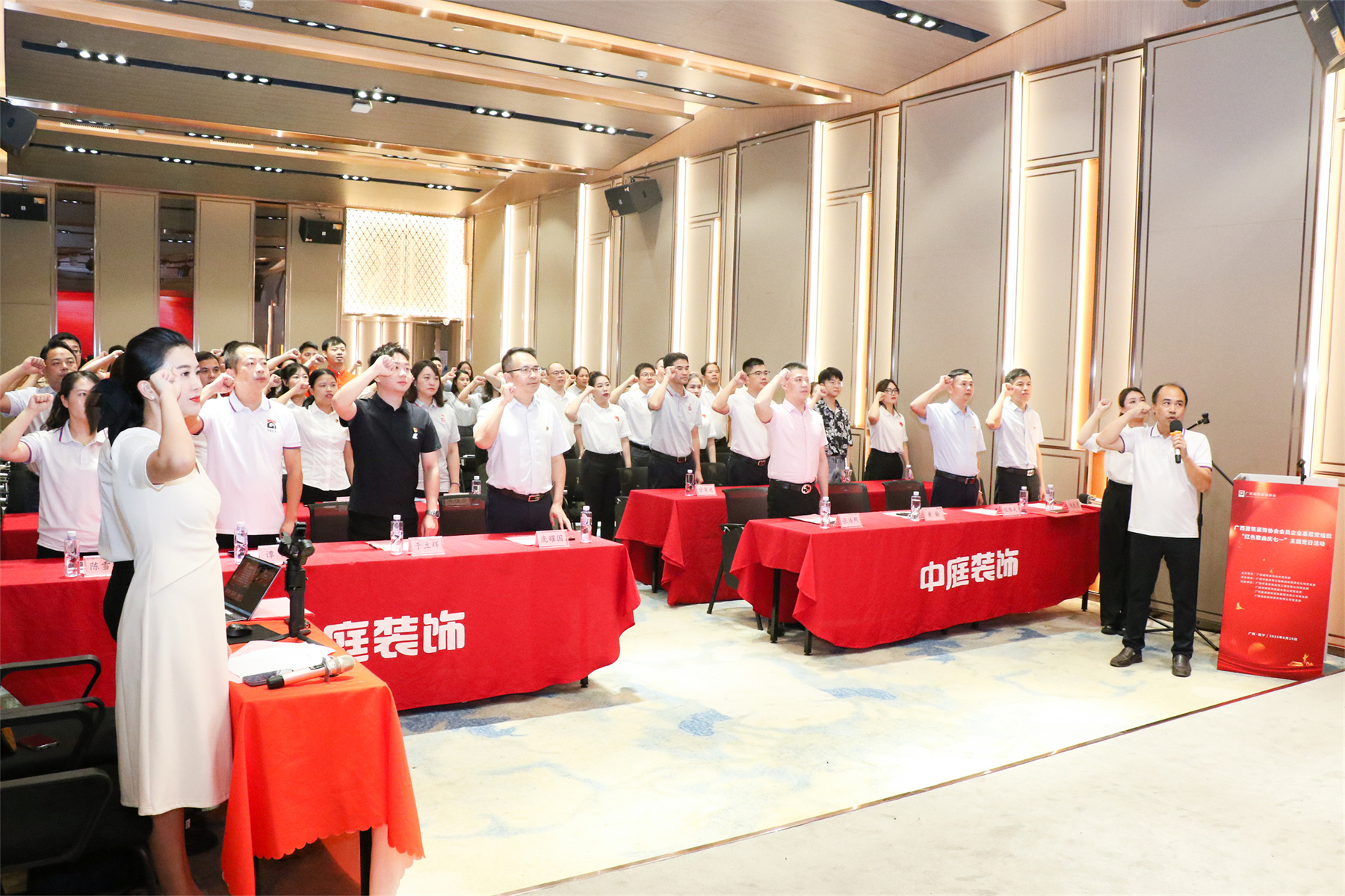 2023年6月29日,廣西建筑裝飾協(xié)會(huì)主辦的會(huì)員企業(yè)基層黨組織“紅色歌曲慶七一”主題黨日活動(dòng)在南寧開(kāi)展,華輝黨支部積極組織黨員參加。黨員們?cè)谥販亟?jīng)典的同時(shí),在思想上接受了一次黨性教育的洗禮,進(jìn)一步傳承紅色革命精神,堅(jiān)定永遠(yuǎn)跟黨走的理想信念。
