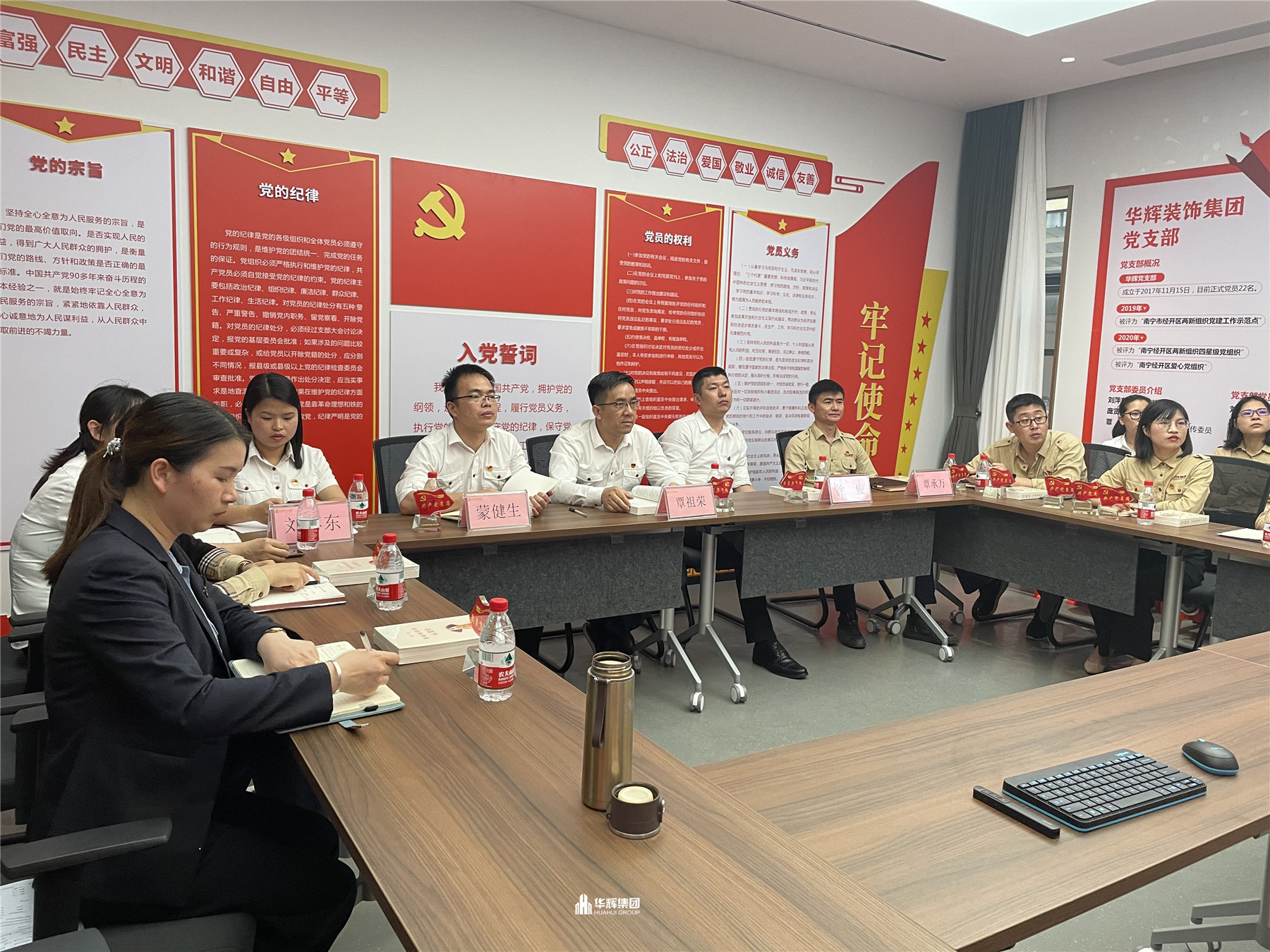 當天,黨支部同時開展“黨員攻堅隊”授旗儀式,為新組建的陽光城檀悅項目、華輝裝配式裝修生產(chǎn)中心“黨員攻堅隊” 授旗,起步就要提速開局就要爭先 ,攻堅隊全體成員將對照高標準,服從命令、聽從指揮,鍛造過硬紀律作風;自覺踐行黨員先進性,自覺打頭陣、當先鋒,充分發(fā)揮攻堅隊模范引領作用。