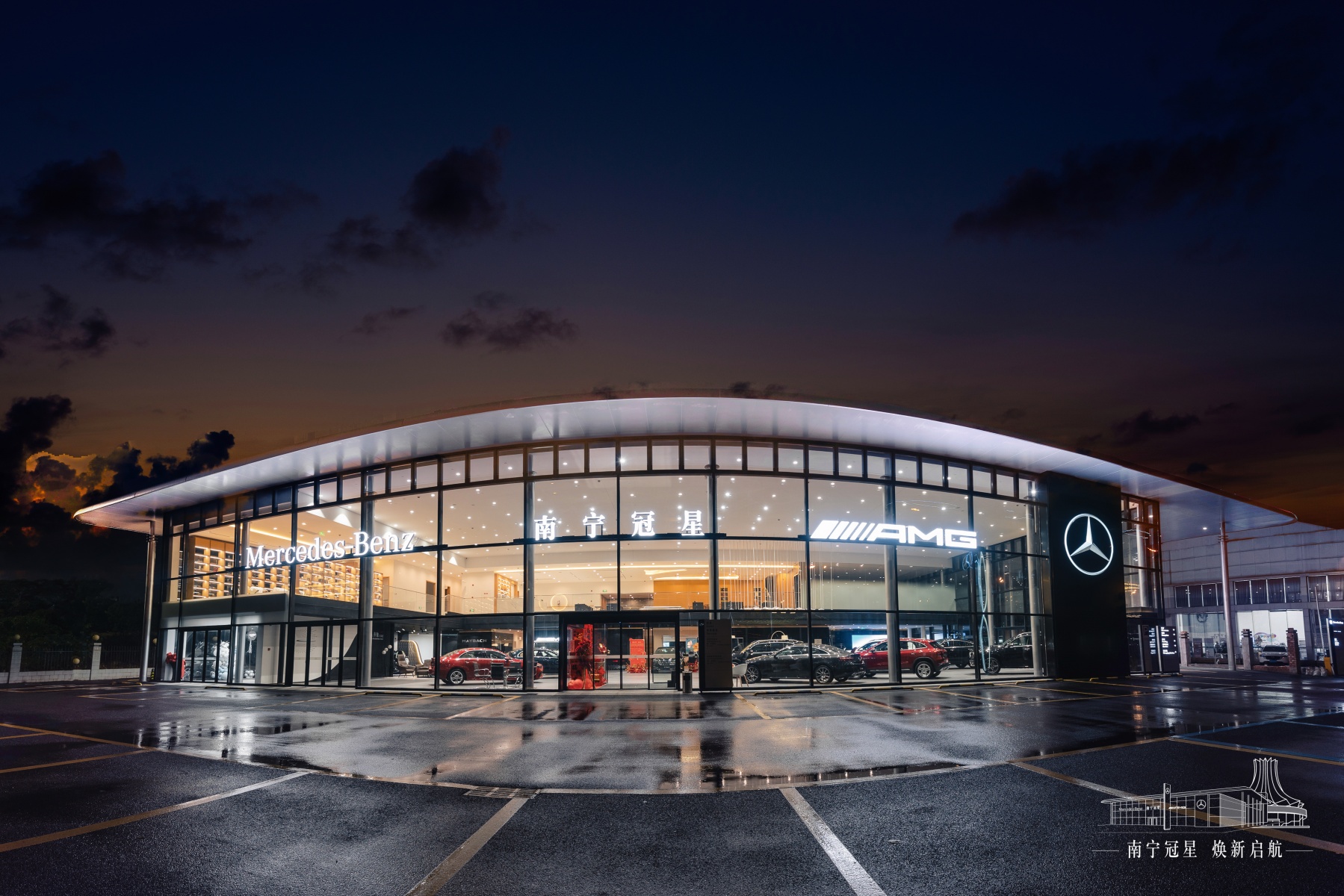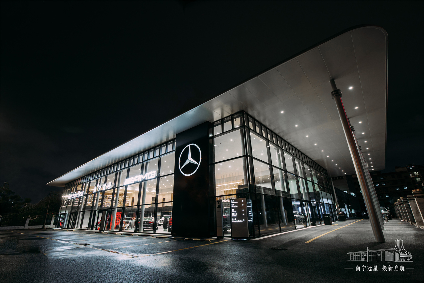 2024年,南寧梅賽德斯-奔馳MAR2020的全新展廳煥新升級收官,采用奔馳全球最新設(shè)計語言,由華輝裝飾負責施工,詮釋世界頂級豪華汽車品牌的裝飾空間美學(xué)。