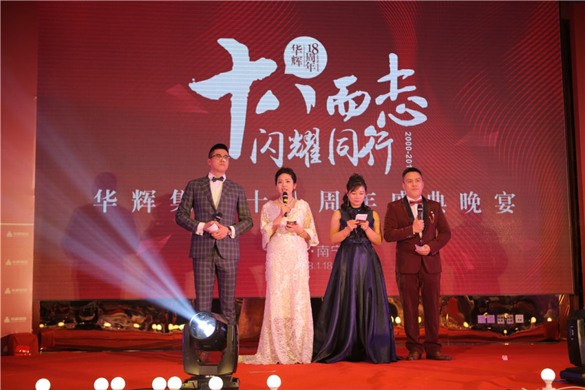 2018年1月18日,華輝集團(tuán)“十八而志 閃耀同行”十八周年盛典在南寧萬象城迎囍皇宮隆重舉辦,近五百名華輝家人及嘉賓歡聚一堂,共同慶祝華輝18年華誕。
