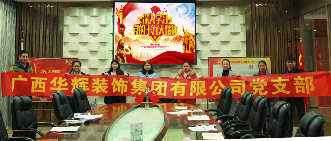 華輝集團(tuán)黨支部成立于2017年10月31日,目前黨支部成員有14名。華輝集團(tuán)始終堅持跟黨走,黨的十九大報告堅定了華輝集團(tuán)走好產(chǎn)業(yè)升級的發(fā)展之路的步伐,全體華輝人將繼續(xù)沿著黨的方針政策奮力前行,全面深入貫徹十九大報告精神,做好本職工作,不斷推動企業(yè)產(chǎn)業(yè)升級,增強(qiáng)企業(yè)發(fā)展活力。