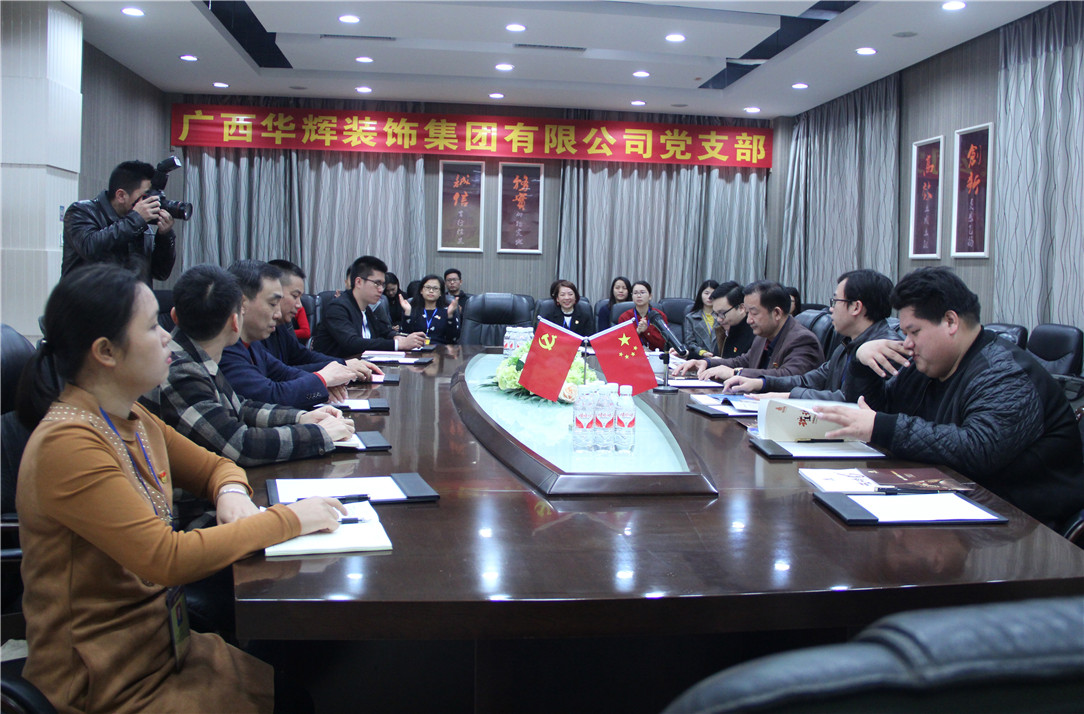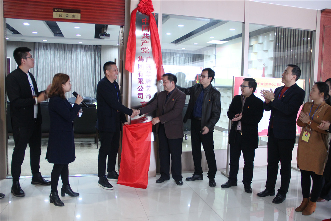 2018年2月28日上午,華輝集團(tuán)舉行黨支部揭牌儀式。南寧經(jīng)濟(jì)開發(fā)區(qū)黨工委副書記、兩新黨工委書記覃傳財(cái),南寧經(jīng)濟(jì)開發(fā)區(qū)兩新黨工委副書記、黨群工作局局長劉志國,副局長蘇致誠,兩新科科長黃丹等領(lǐng)導(dǎo)出席了揭牌儀式。