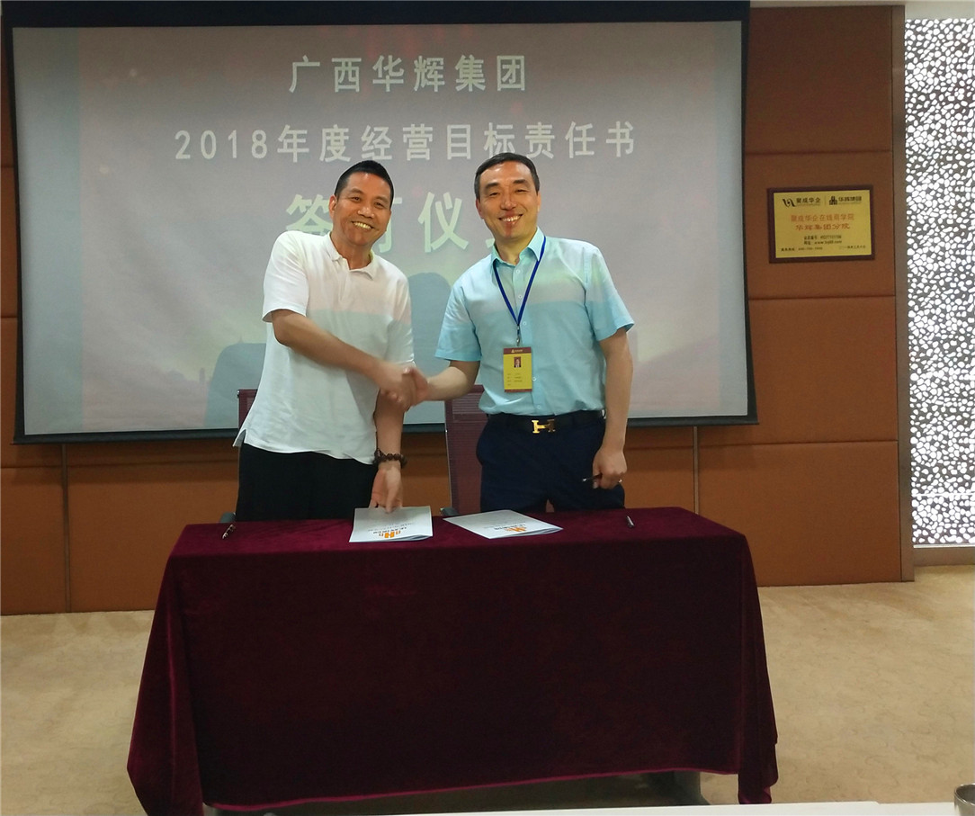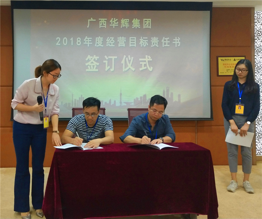 隨后,華輝集團(tuán)2018年度經(jīng)營目標(biāo)責(zé)任書簽訂儀式將總結(jié)會的氛圍推至高潮,責(zé)任書的簽訂讓每個人都切實感受到身上的重?fù)?dān)和責(zé)任。