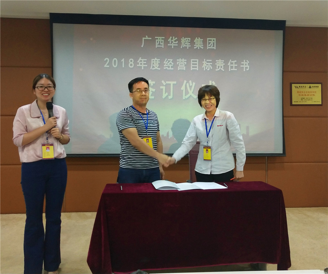 2018年度經(jīng)營目標(biāo)責(zé)任書是在《華輝集團(tuán)2018年戰(zhàn)略指導(dǎo)書》的前提下,針對各子公司、各部門,共商共量制定出來的,讓戰(zhàn)略目標(biāo)分解到部門/團(tuán)隊/個人,人人有目標(biāo),人人有動力,真正做到“千斤重?fù)?dān)萬人挑,人人有頭上有指標(biāo)”,將考核內(nèi)容進(jìn)一步落實到實處,全面確保戰(zhàn)略目標(biāo)的實現(xiàn)。