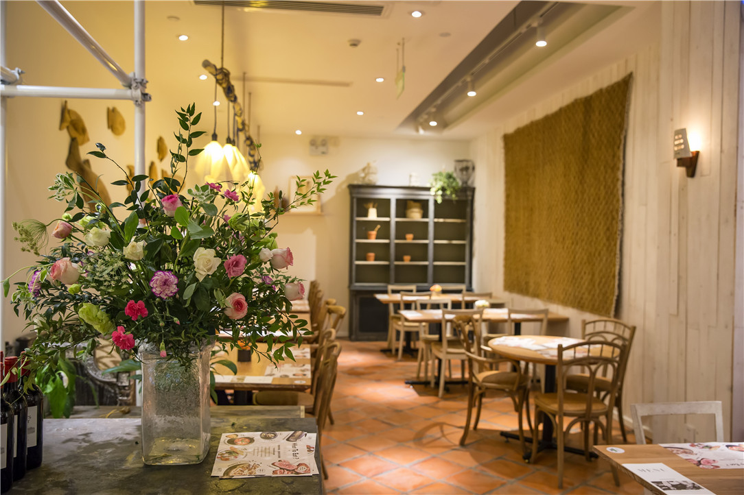 用餐區(qū)的裝修保持了烏瑪一貫簡潔優(yōu)雅的調性,白色墻面和木質桌椅,以及墻上別致的小擺件,在柔和的黃色燈光下,有種令人放松的親切感。隨意挑個心儀的位子坐下,點上一份西餐,沒有外部世界的叨擾,這里足以讓你填飽肚子,慰藉心靈,達到身心的雙重統(tǒng)一。