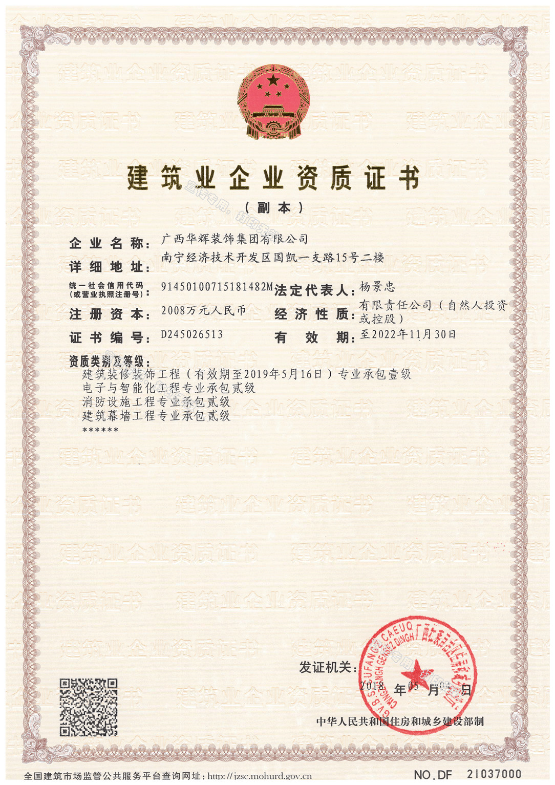 此項資質的獲批,是對華輝集團資信、技術條件的高度肯定,標志著華輝集團在工程施工領域的創(chuàng)新,將進一步提升市場核心競爭力,為保證公司持續(xù)穩(wěn)定提升發(fā)展奠定堅實基礎。
