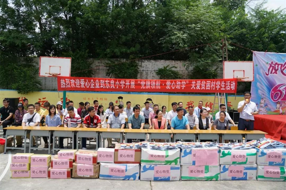 ▲在東良小學(xué)開展“黨旗領(lǐng)航·愛心助學(xué)”關(guān)愛貧困村學(xué)生活動