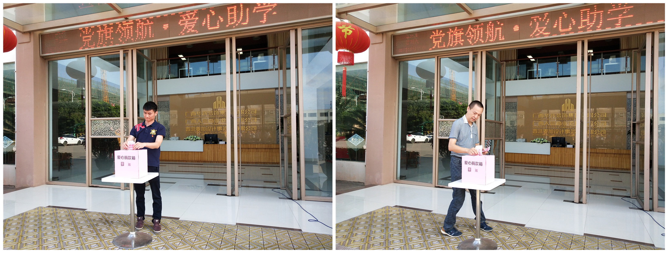 龍昌小學(xué)和東良小學(xué)地處大石山區(qū),當(dāng)?shù)刈匀粭l件惡劣、群眾生活困難。為此,5月26日,華輝集團(tuán)舉辦“黨旗領(lǐng)航·愛心助學(xué)”捐款儀式,大家紛紛獻(xiàn)出愛心,捐款共計10532元,全部用于購買書籍、學(xué)習(xí)用品、課桌、校服捐獻(xiàn)給龍昌小學(xué)和東良小學(xué)的貧困學(xué)子。