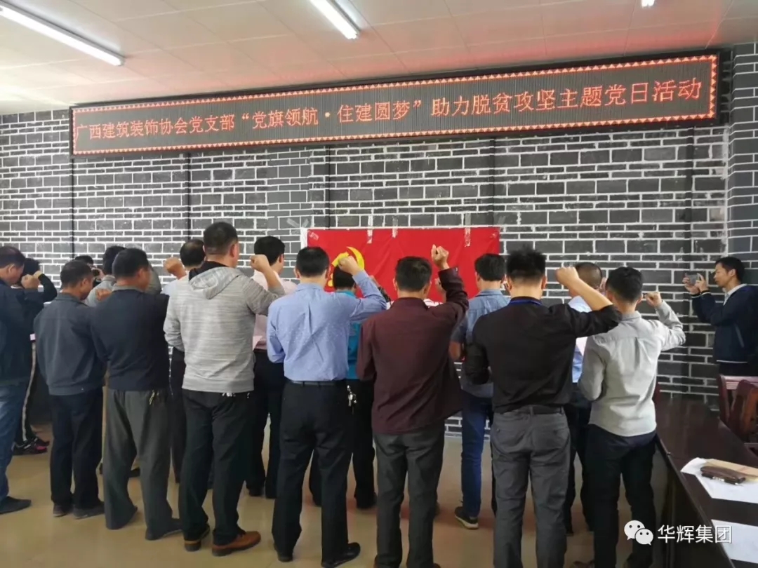 2018年11月2日,在廣西住房和城鄉(xiāng)建設(shè)廳機(jī)關(guān)黨委專職副書記、行業(yè)黨委常務(wù)副書記劉鴻銘,機(jī)關(guān)黨委副調(diào)研員、行業(yè)黨委副書記、行業(yè)紀(jì)委書記鄒麗萍的帶領(lǐng)下,廣西建筑裝飾協(xié)會(huì)黨支部、會(huì)員愛(ài)心企業(yè)的代表一行共22人,赴上林縣云里村,開(kāi)展“黨旗領(lǐng)航·住建圓夢(mèng)”助力脫貧攻堅(jiān)主題黨日活動(dòng)。
