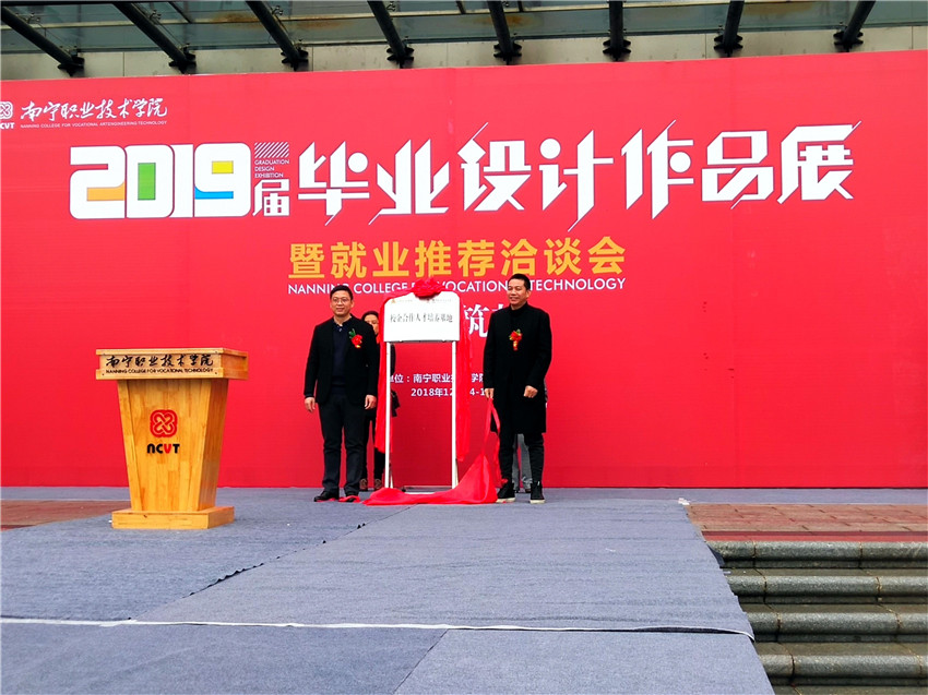 開幕式舉行了南職院藝術工程學院與華輝裝飾集團“校企合作人才培養(yǎng)基地”揭牌儀式,南寧職業(yè)技術學院藝術工程學院黨委書記張治中、楊景忠董事長共同揭開了牌匾。