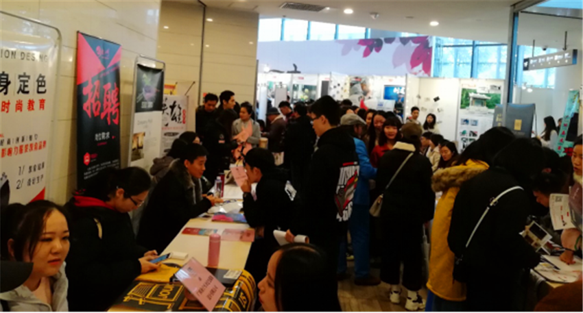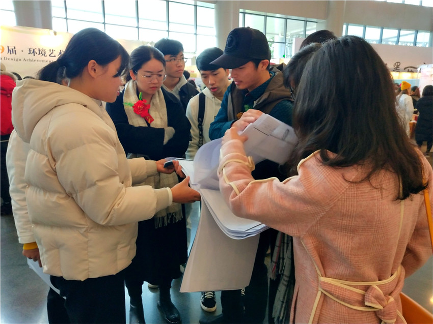 畢業(yè)作品展開展的同時,就業(yè)推薦洽談會也如火如荼地舉行,華輝裝飾集團人資部也參與了現(xiàn)場招聘。