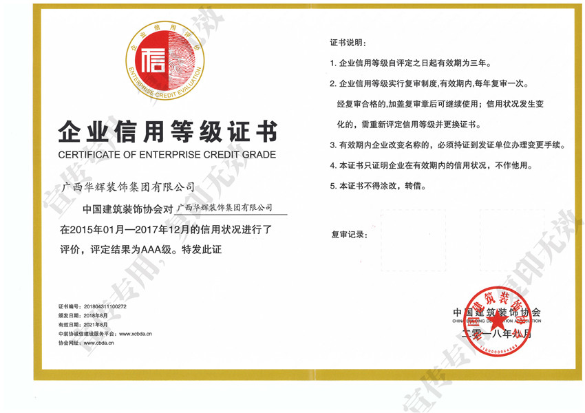 ▲全國(guó)建筑裝飾行業(yè)AAA信用企業(yè)