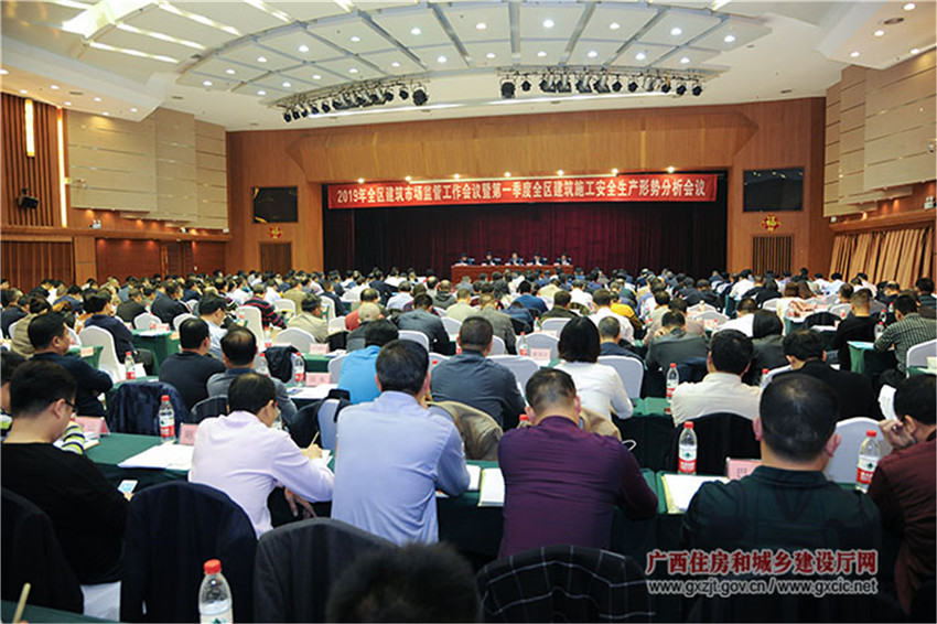 2019年3月14日,全區(qū)建筑市場監(jiān)管工作會議暨第一季度全區(qū)建筑施工安全生產(chǎn)形勢分析會在廣西建設(shè)大廈召開。