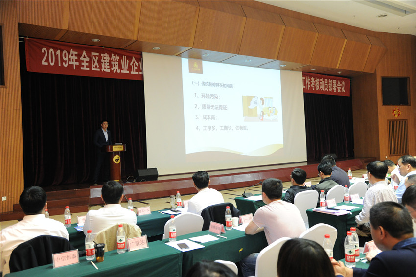廣西華輝裝飾集團楊彬先生作為廣西裝飾企業(yè)代表,在會上做了主題為“立足工廠化生產(chǎn),推進產(chǎn)品化裝修”的經(jīng)驗交流匯報。