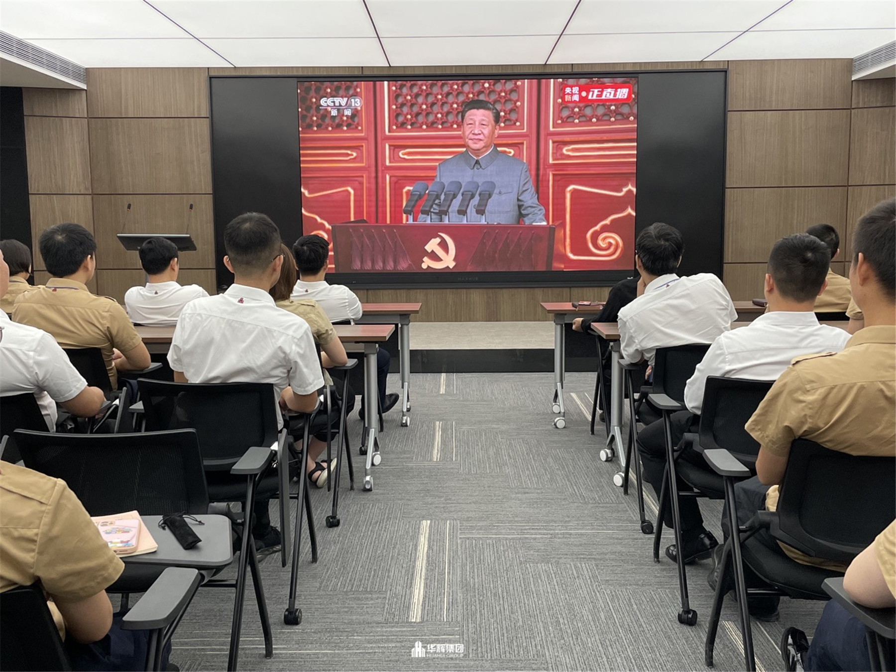 2021年7月1日,慶祝中國共產(chǎn)黨成立一百周年大會(huì)在北京天安門隆重舉行。在華輝黨支部的組織下,華輝黨支部黨員、入黨積極分子,集團(tuán)領(lǐng)導(dǎo)及員工在集團(tuán)總部共同收看了大會(huì)直播,集團(tuán)各分公司、各項(xiàng)目部、外出人員通過集中觀看、手機(jī)觀看等各種方式同時(shí)收看了直播。