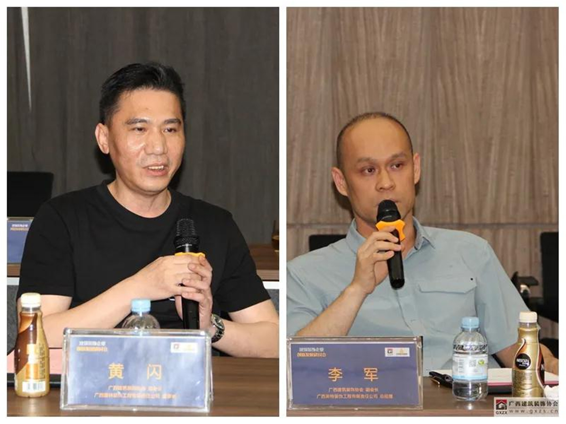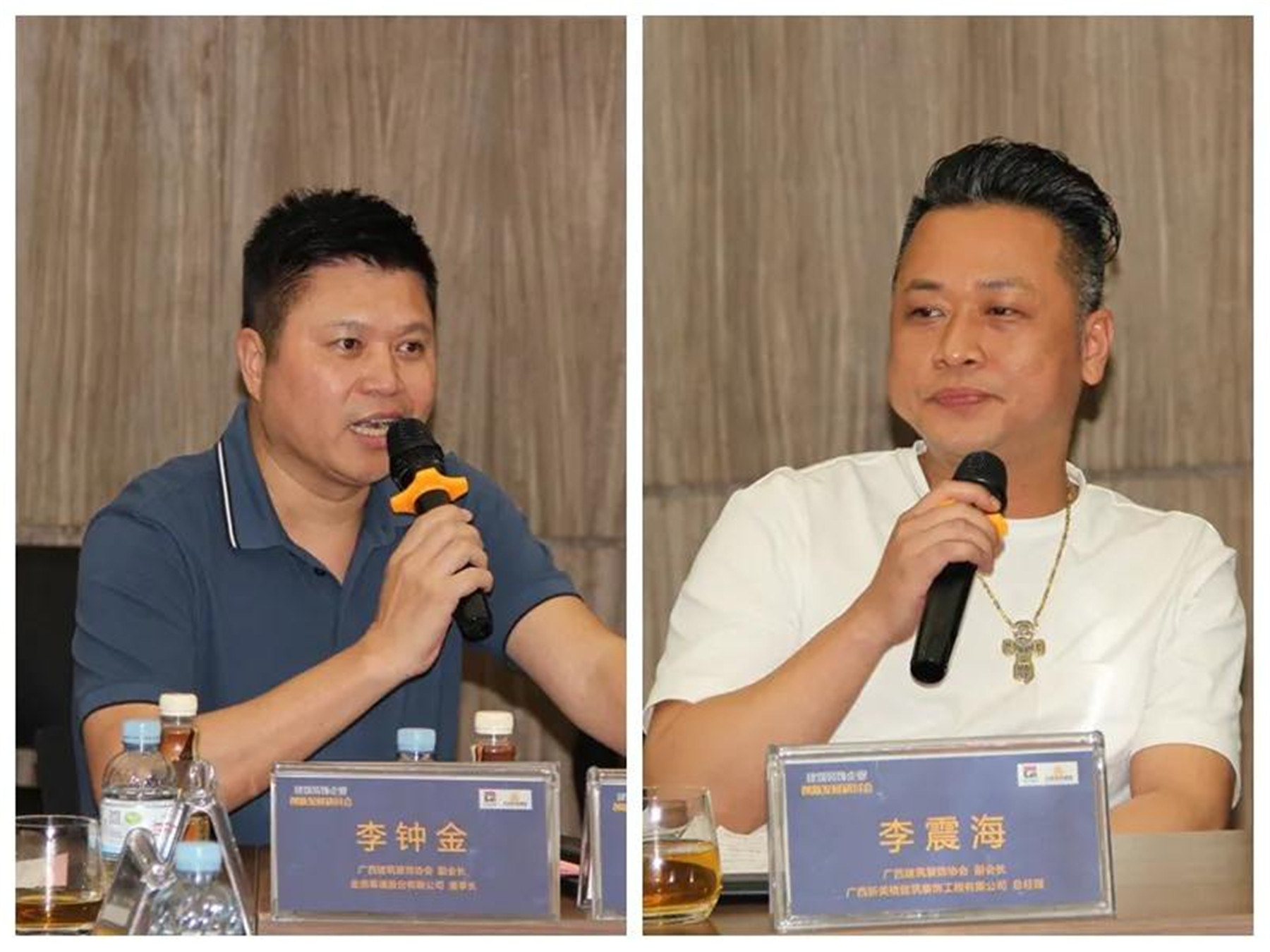 ▲(左)副會(huì)長(zhǎng)、廣西建林裝飾工程有限責(zé)任公司董事長(zhǎng) 黃閃,(右)副會(huì)長(zhǎng)、廣西英特裝飾工程有限責(zé)任公司總經(jīng)理 李軍