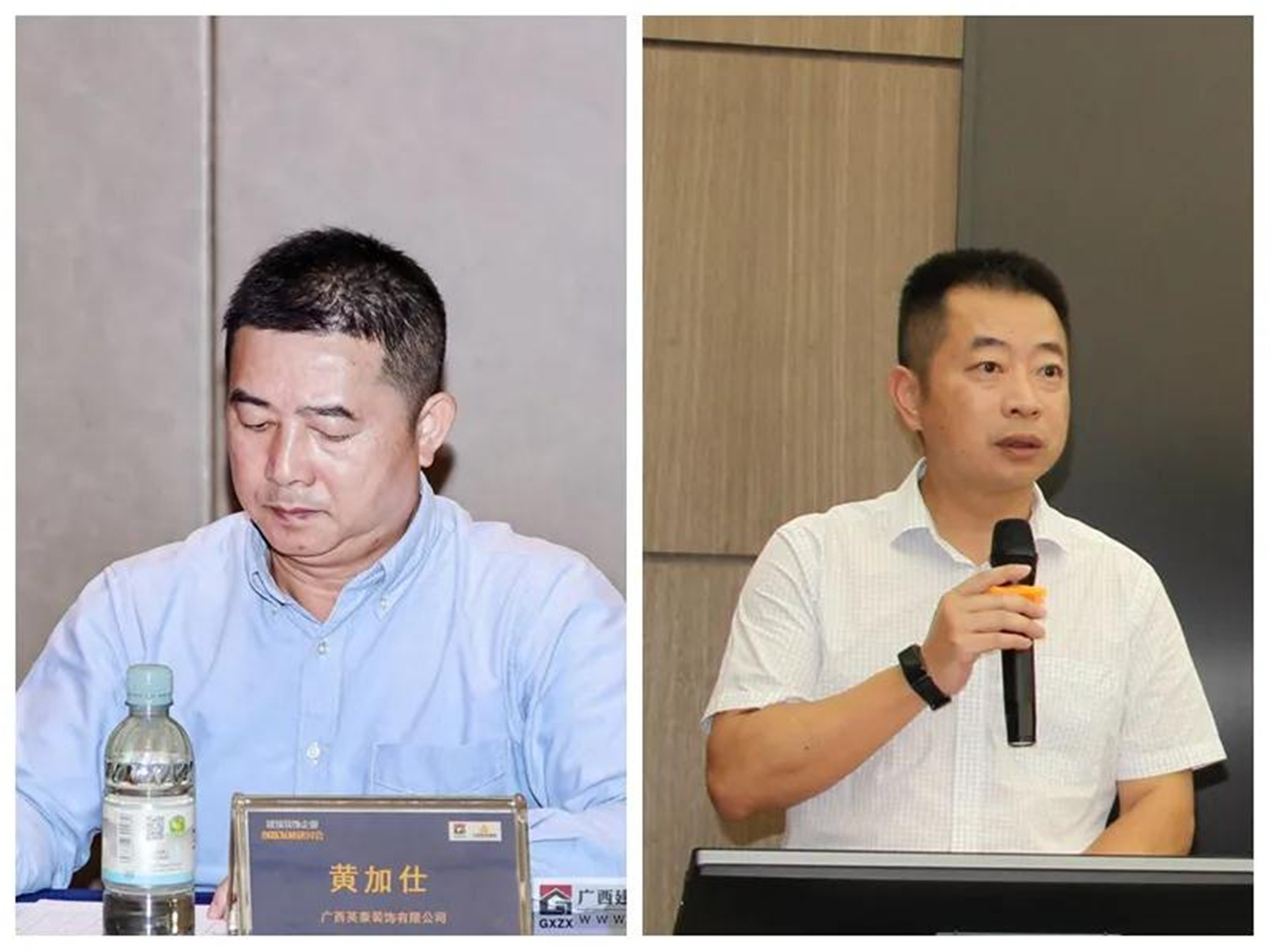 ▲(左)監(jiān)事長(zhǎng)、廣西英泰裝飾有限公司總經(jīng)理 黃加仕,(右)廣西建筑裝飾協(xié)會(huì)副秘書長(zhǎng) 譚謙