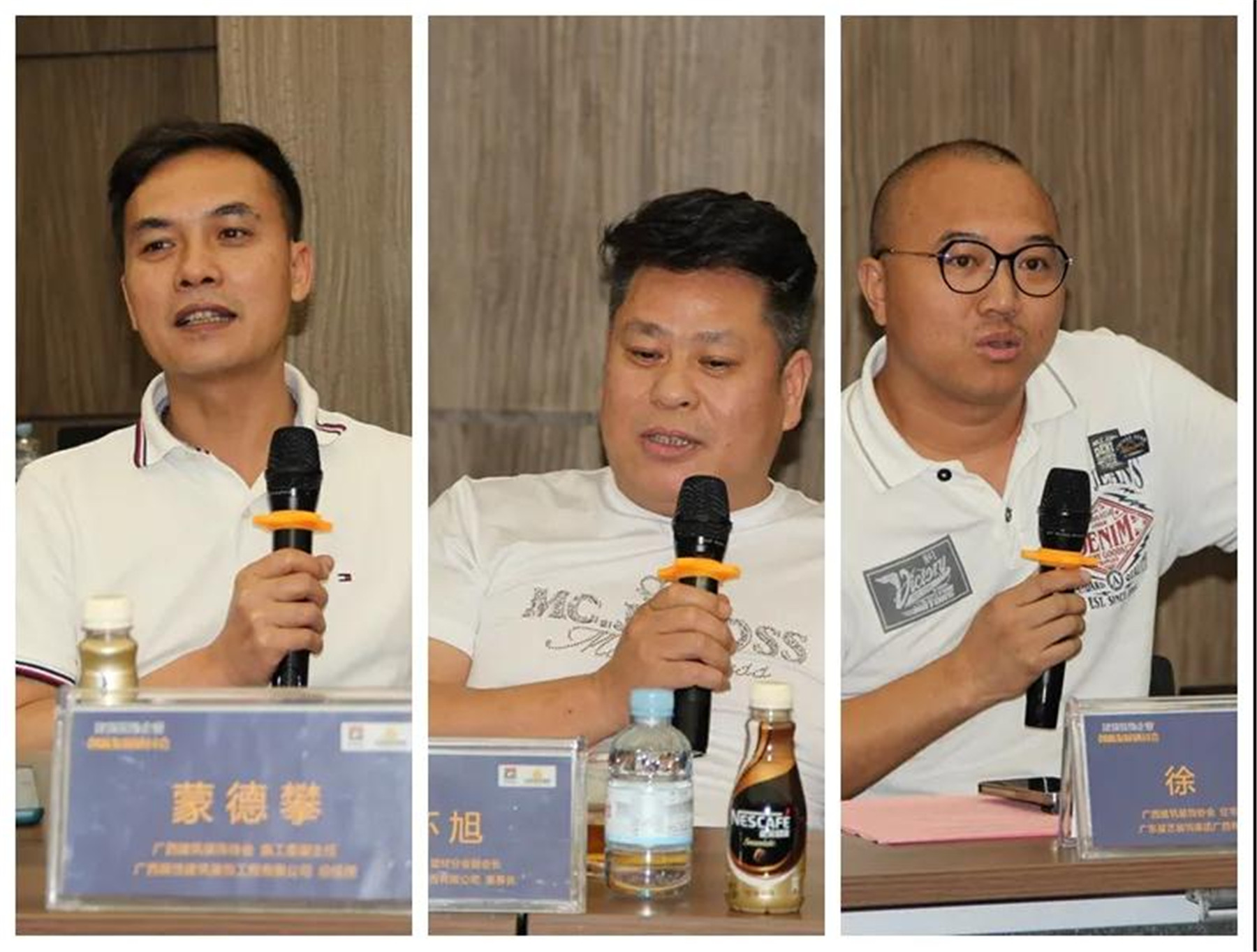 ▲(左)施工委副主任、廣西聯(lián)飾建筑裝飾工程有限公司總經(jīng)理 蒙德攀,(中)建材分會(huì)副會(huì)長(zhǎng)、廣西筑之星裝飾設(shè)計(jì)工程有限公司董事長(zhǎng) 林懷旭,(右)住宅裝修分會(huì)副會(huì)長(zhǎng)、 廣東星藝裝飾集團(tuán)廣西有限公司區(qū)域總監(jiān) 徐橘