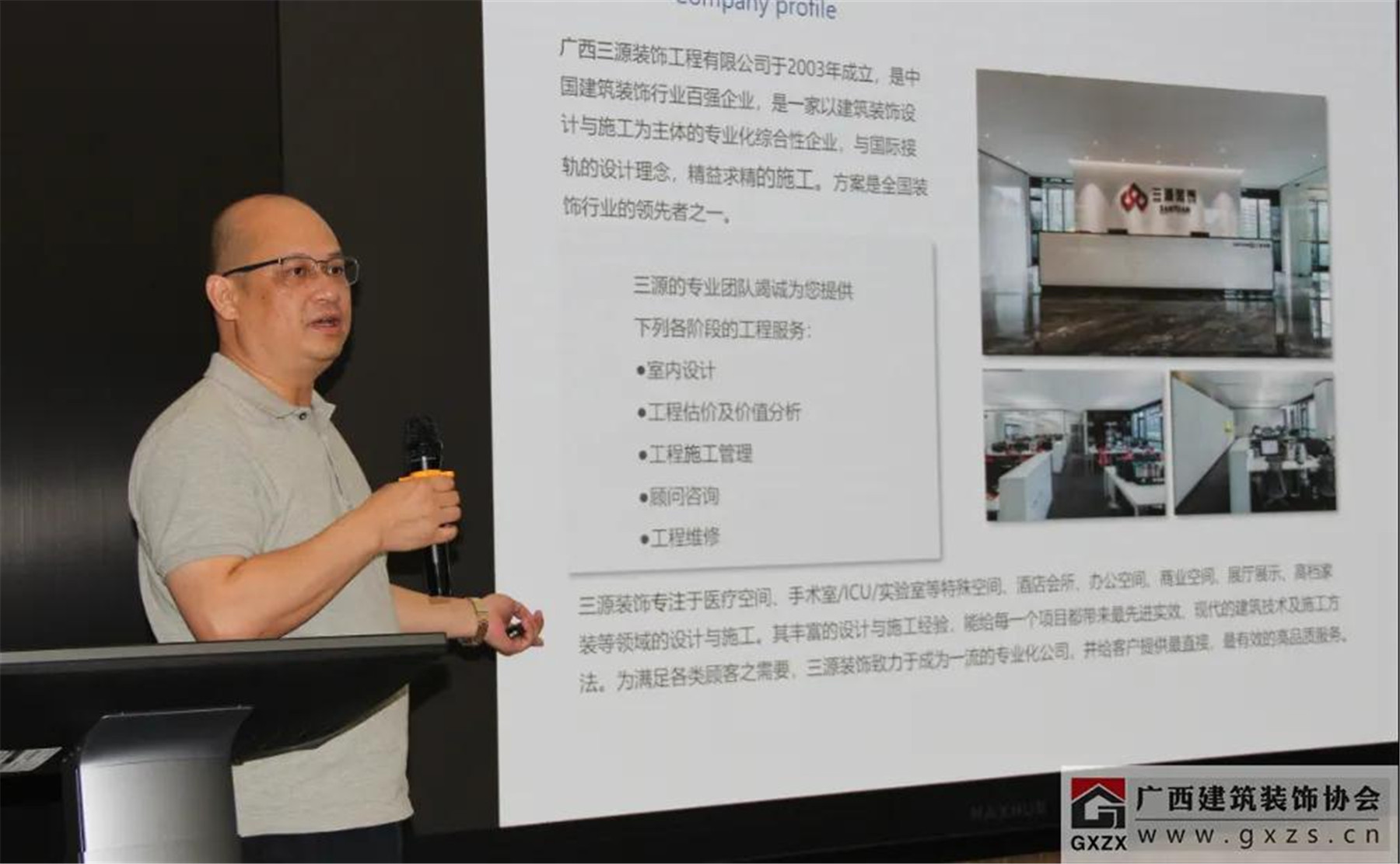 廣西三源裝飾工程有限公司副總經(jīng)理陳遠(yuǎn)立為與會(huì)嘉賓做了“EPC項(xiàng)目經(jīng)驗(yàn)分享”。