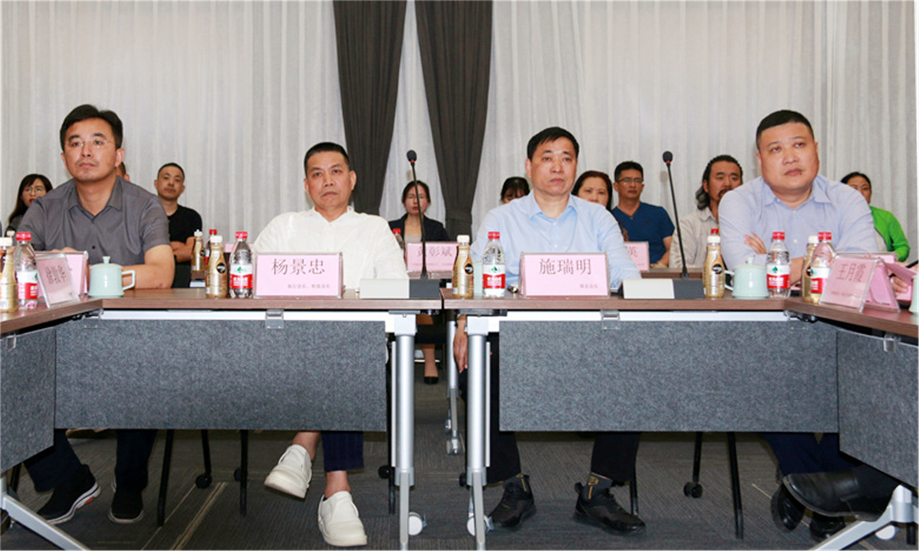 ▲從左至右:商會(huì)執(zhí)行會(huì)長楊勤偉、楊景忠,商會(huì)會(huì)長施瑞明、商會(huì)黨支部書記張國富出席交流分享會(huì)