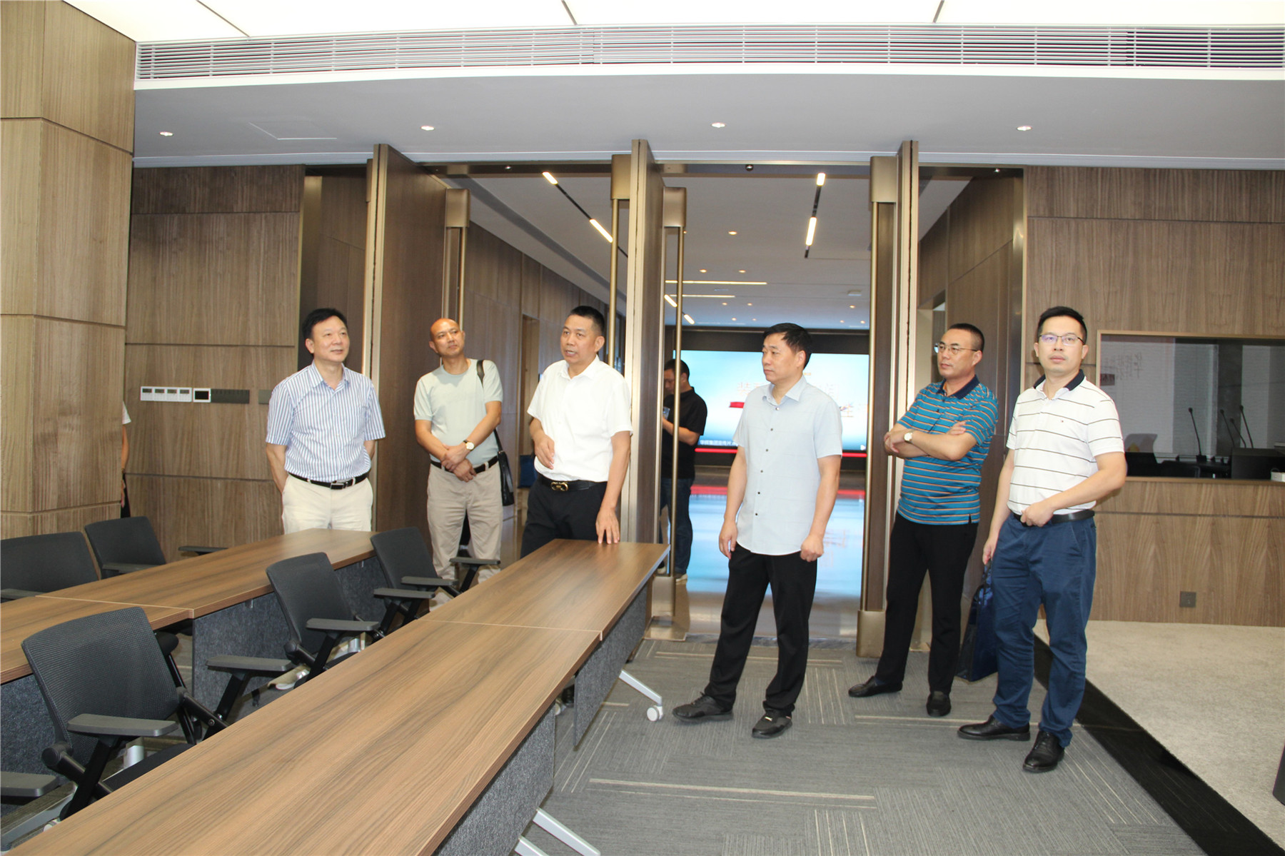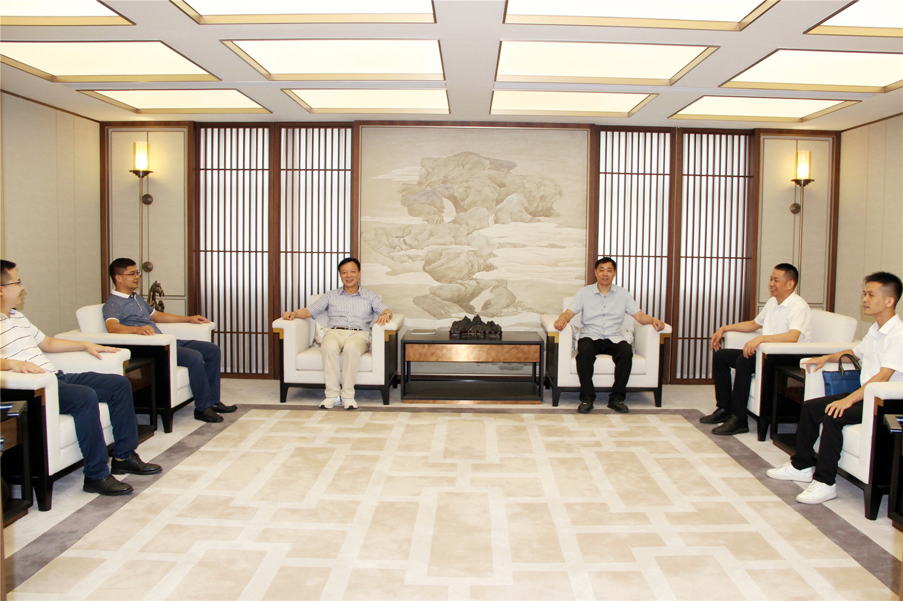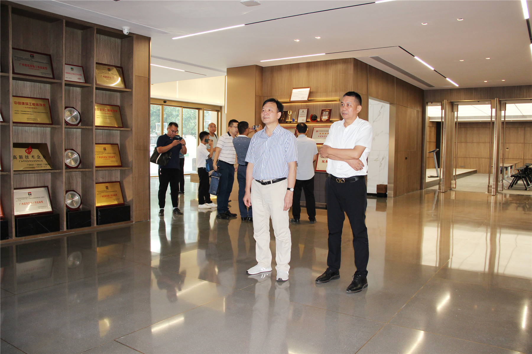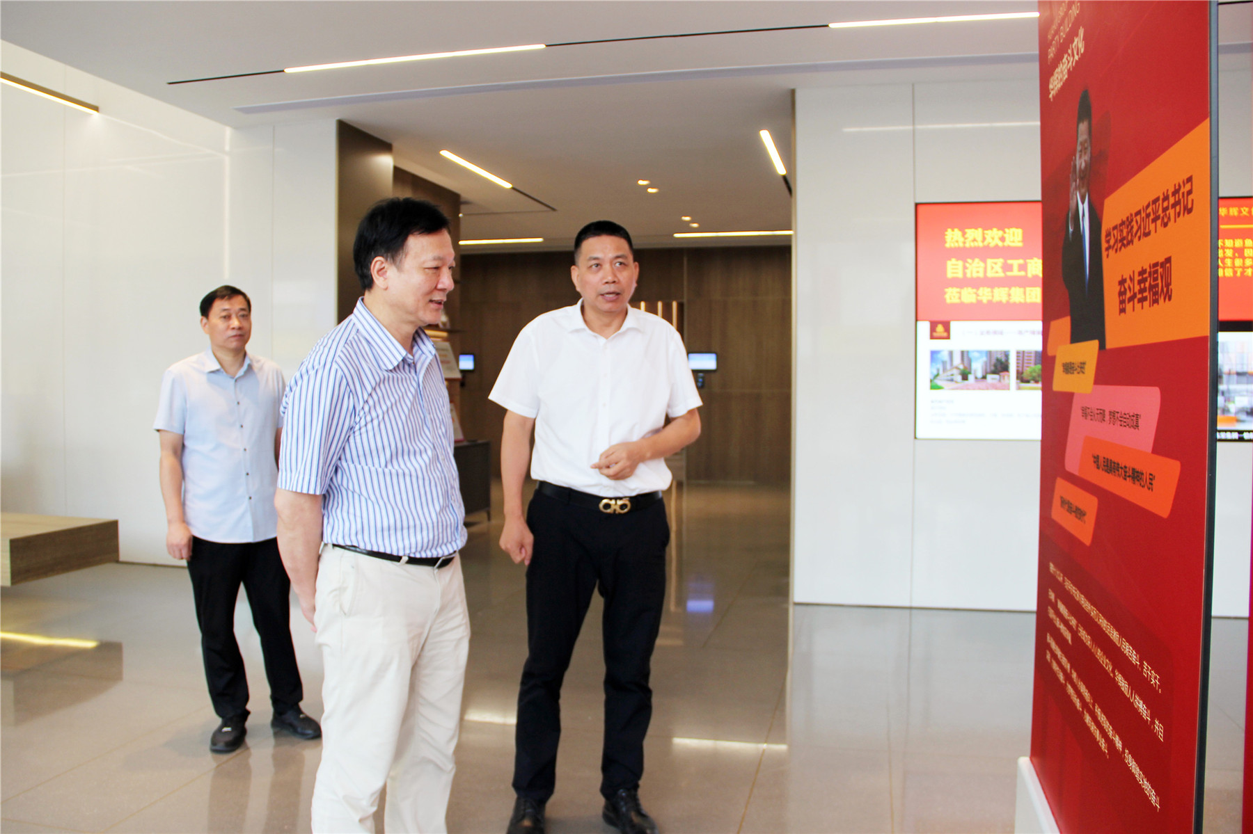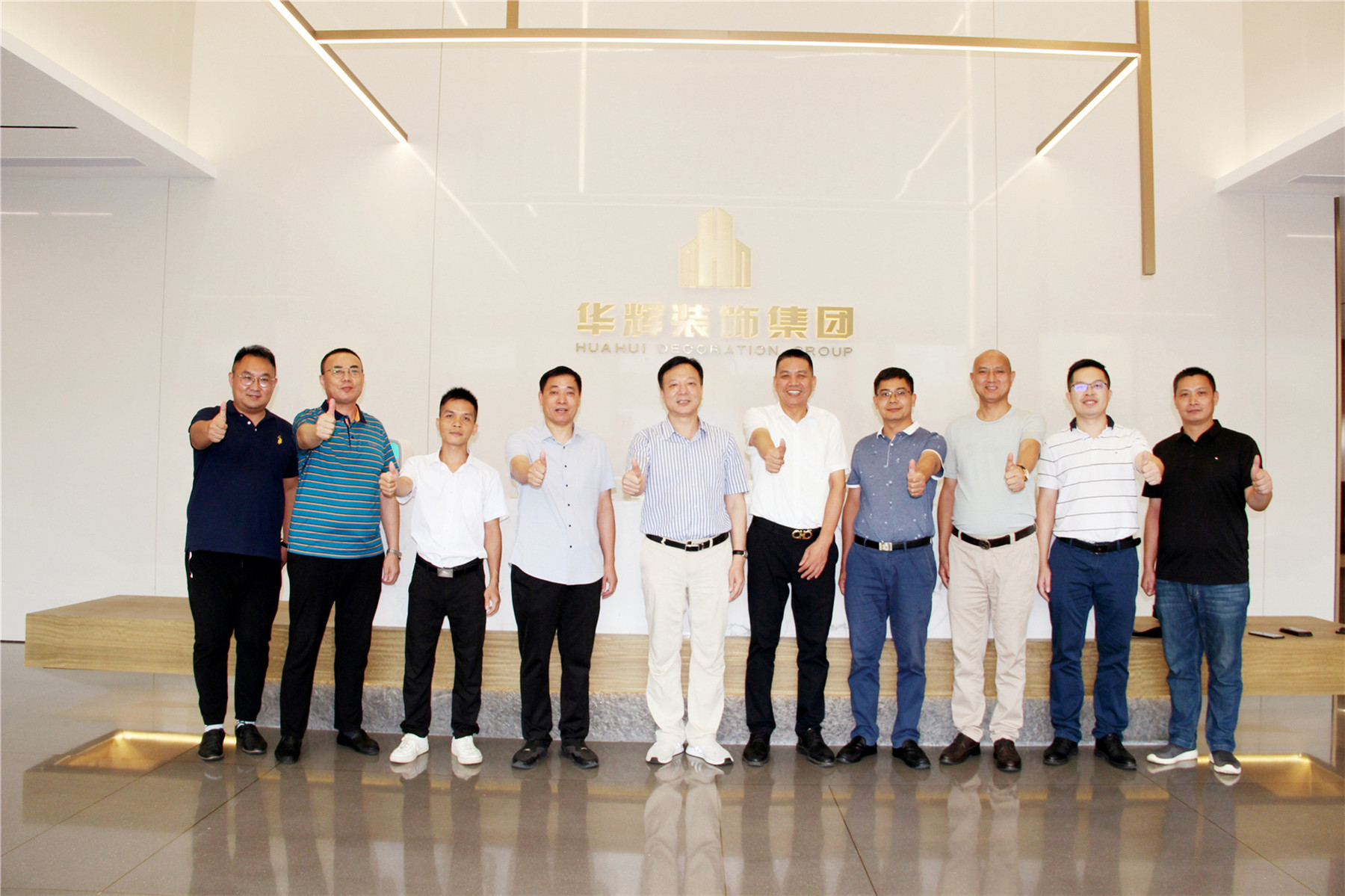 吳振秋副主席一行在楊景忠董事長(zhǎng)的陪同下參觀了華輝集團(tuán),深入了解了華輝集團(tuán)的經(jīng)營(yíng)情況、發(fā)展需求等情況,并與楊董事長(zhǎng)深入交流建筑裝飾行業(yè)發(fā)展情況。