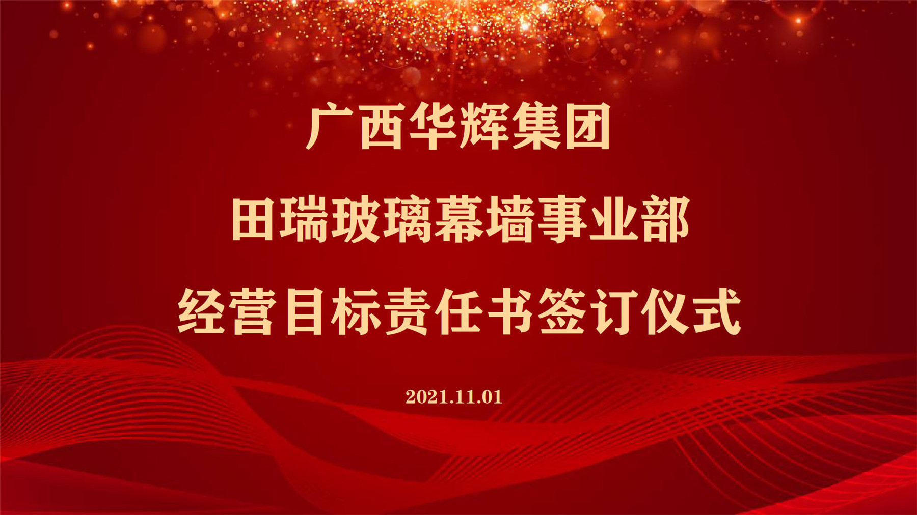 2021年11月1日,廣西華輝裝飾集團有限公司與南寧田瑞玻璃有限責(zé)任公司,正式成立“華輝集團田瑞玻璃幕墻事業(yè)部”,雙方簽署經(jīng)營目標責(zé)任書,開啟全新領(lǐng)域的拓展。