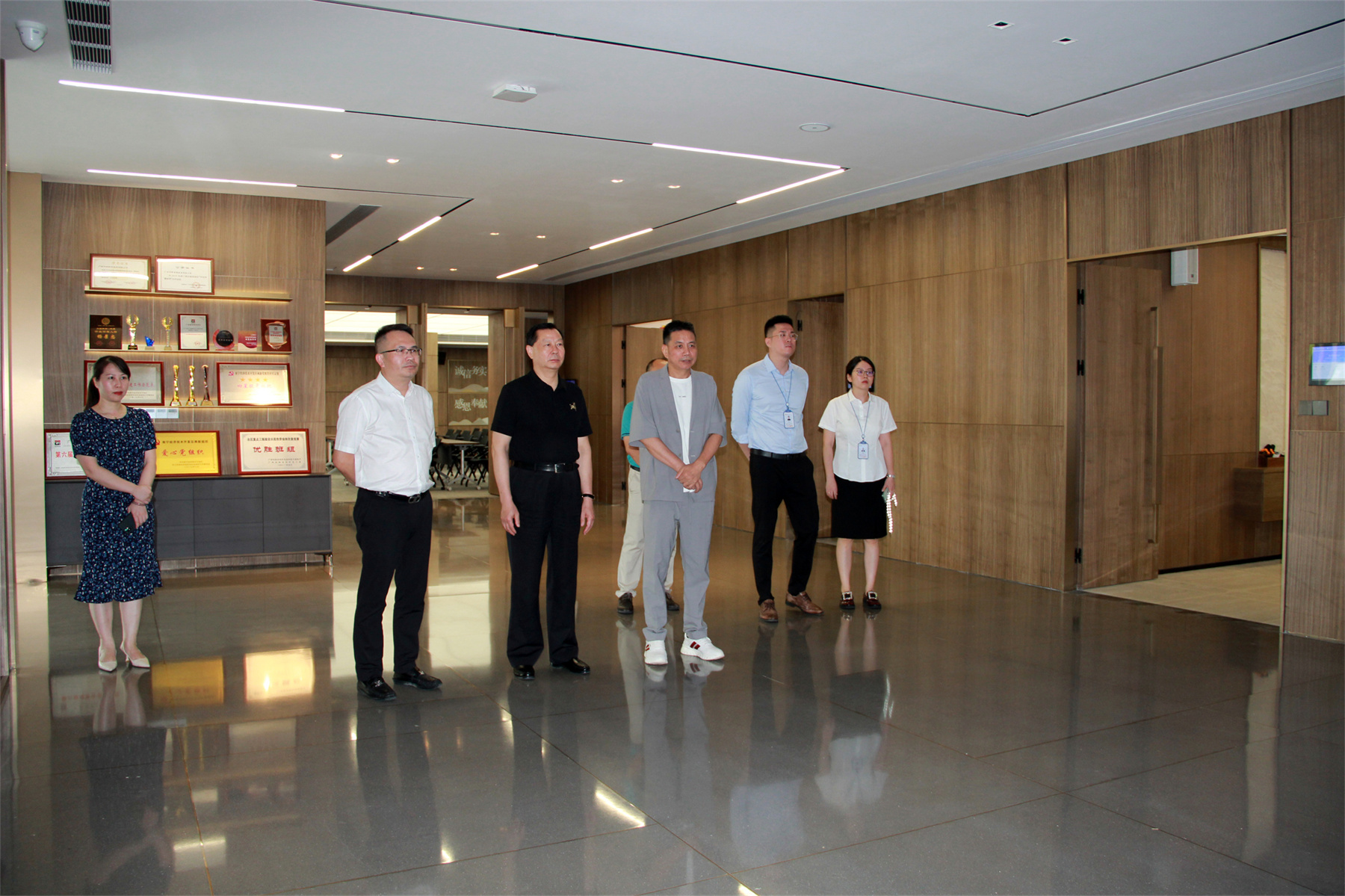 協(xié)會(huì)領(lǐng)導(dǎo)一行在楊景忠董事長的陪同下參觀了華輝集團(tuán),深入了解了華輝集團(tuán)的經(jīng)營情況、發(fā)展需求等情況。