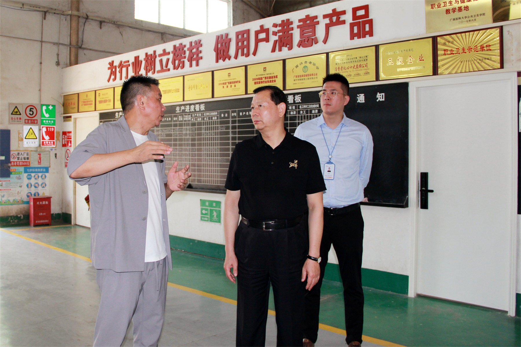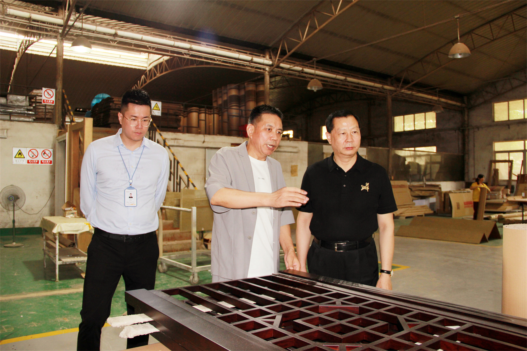 在參觀黨建活動(dòng)陣地時(shí),王中奇會(huì)長對于華輝黨建和經(jīng)營互促互贏的成績給予了高度肯定。在華輝裝配式裝修生產(chǎn)車間,王中奇會(huì)長認(rèn)真聆聽了技術(shù)人員介紹生產(chǎn)流程、工藝,鼓勵(lì)華輝繼續(xù)走創(chuàng)新發(fā)展道路,擴(kuò)大裝配式裝修的發(fā)展成果,推動(dòng)企業(yè)縱深發(fā)展。