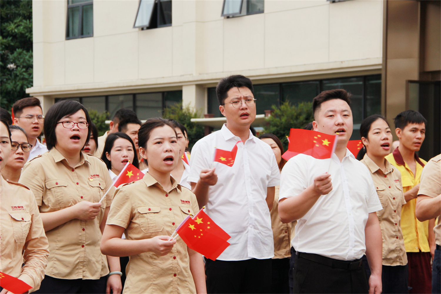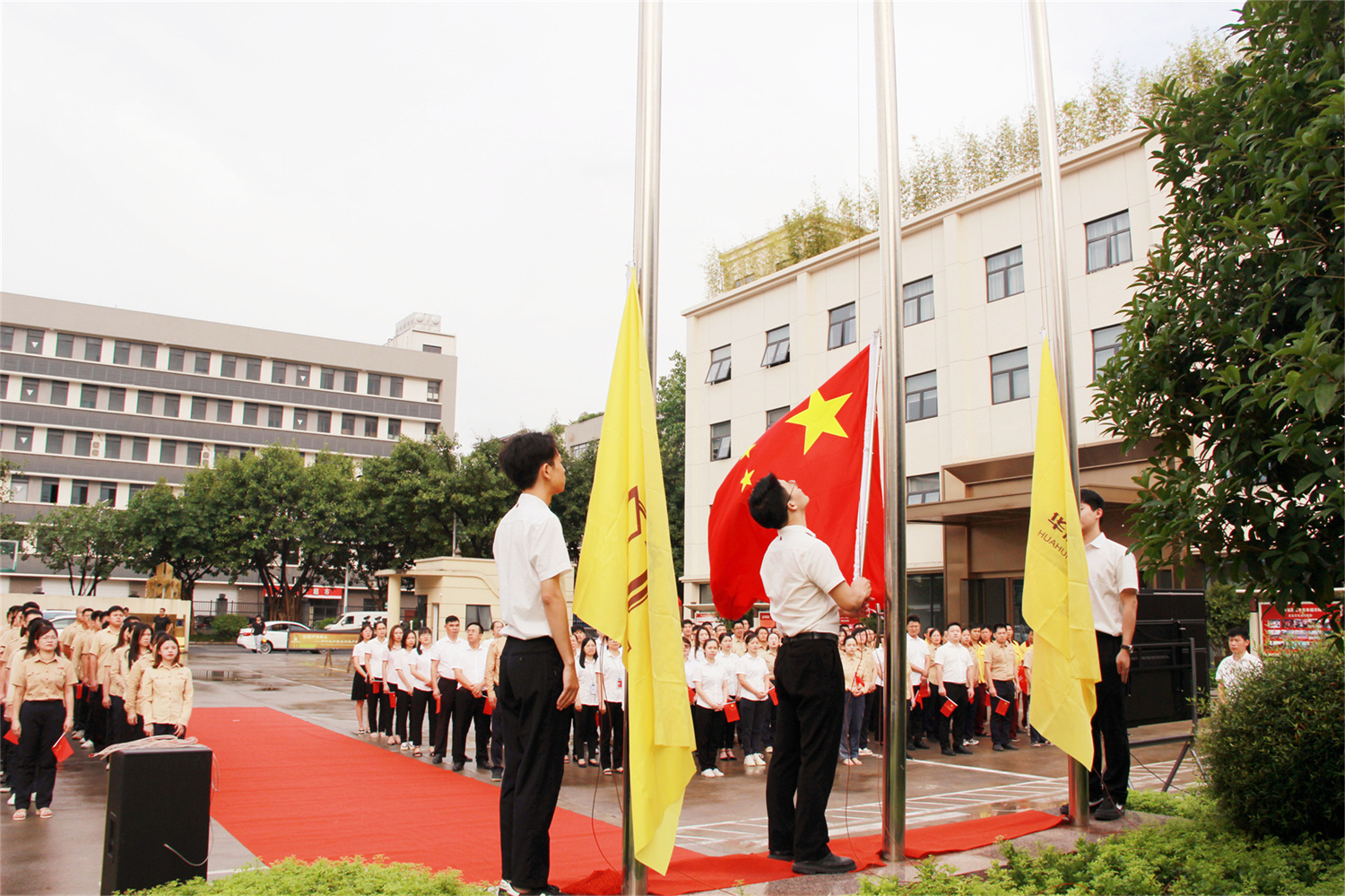 上午8點,華輝人匯聚集團總部操場整齊列隊,在蓬勃的朝陽下,鮮艷的五星紅旗在激昂雄壯的國歌聲中冉冉升起、迎風(fēng)飄揚,全體華輝人肅立注目,齊唱國歌,向偉大的祖國致以最崇高的敬意和深深祝福。