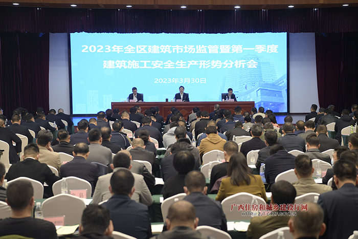 ▲2023年全區(qū)建筑市場監(jiān)管暨第一季度建筑施工安全生產(chǎn)形勢分析會現(xiàn)場