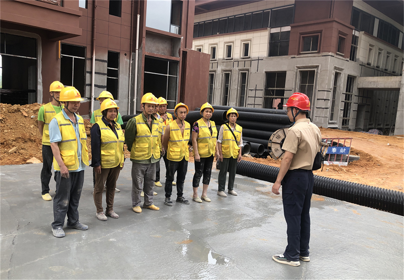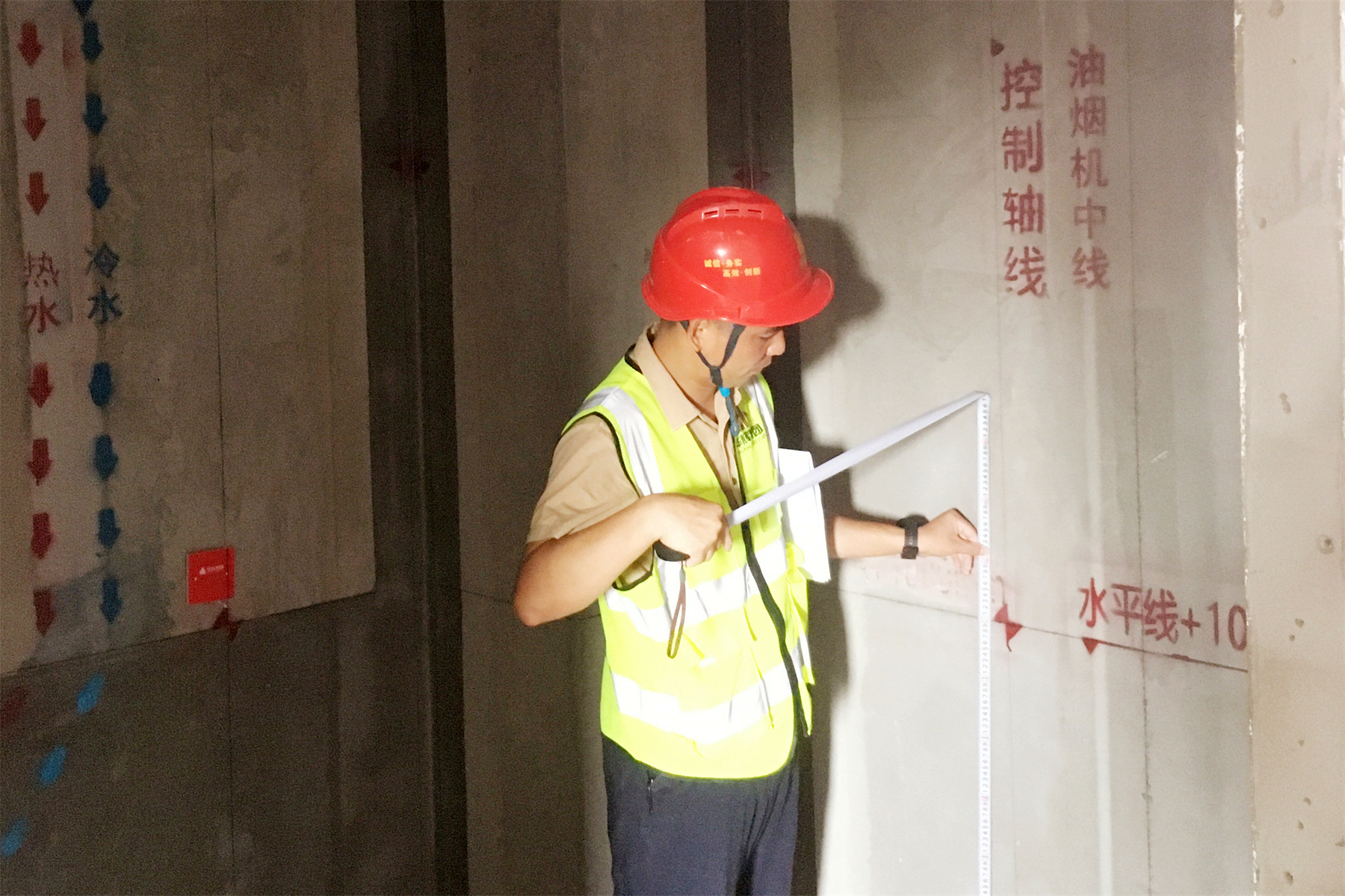 ▲華輝項目經(jīng)理在施工現(xiàn)場檢查施工情況