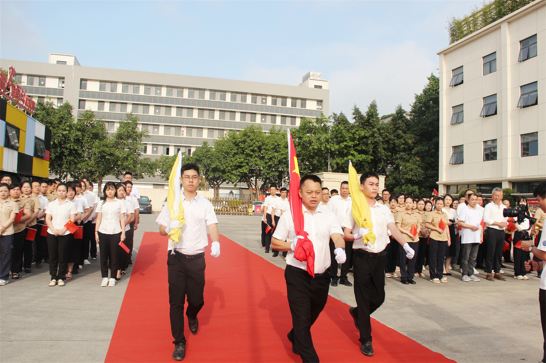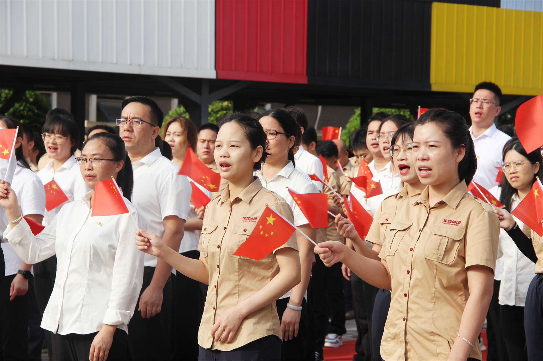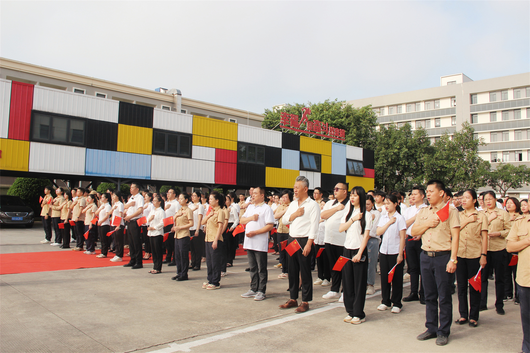 在莊嚴的國旗下,華輝人整齊列隊,肅立致敬。伴隨著激昂的國歌旋律,五星紅旗冉冉升起,迎風飄揚。