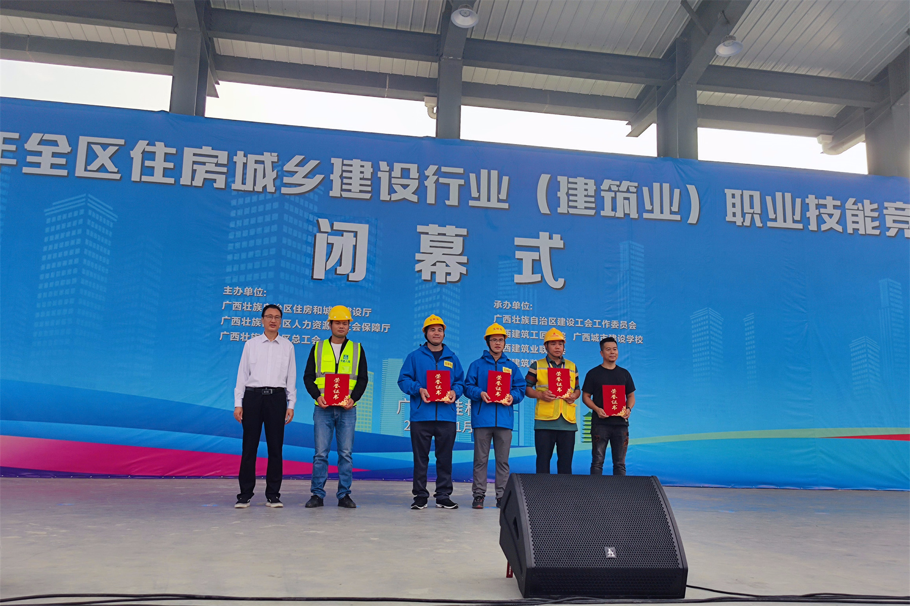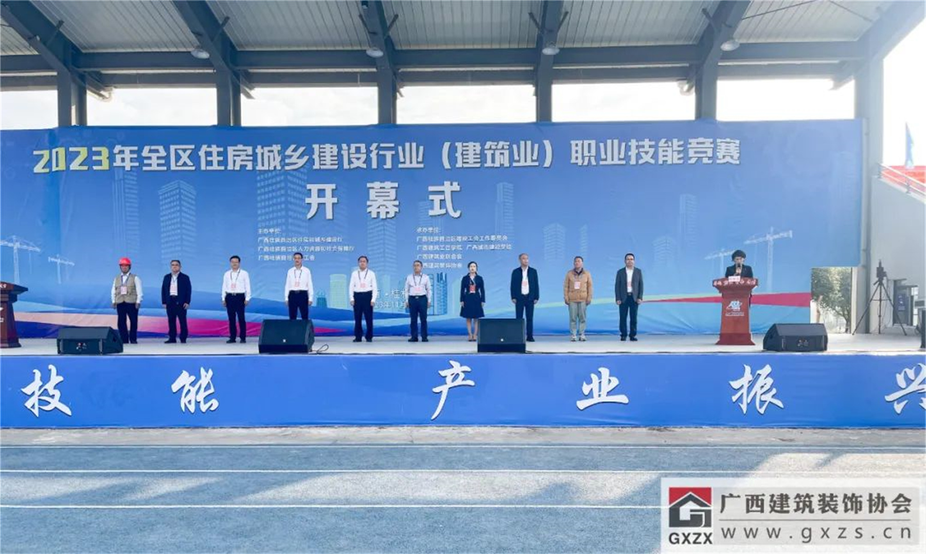 11月2日,本次職業(yè)技能競賽開幕式,自治區(qū)住房城鄉(xiāng)建設(shè)廳黨組成員、副廳長黎旭標(biāo),自治區(qū)總工會黨組成員、副主席韋克軒,自治區(qū)住房城鄉(xiāng)建設(shè)廳人教處處長傅波,自治區(qū)總工會產(chǎn)業(yè)工會工作部部長劉文偉,廣西建設(shè)工會副主任(主持工作 )、二級調(diào)研員鄒麗萍,桂林市住房城鄉(xiāng)建設(shè)局黨組成員、副局長蕭喜生,廣西城市建設(shè)學(xué)校黨委書記、校長蔣以明,廣西建筑業(yè)聯(lián)合會會長黃大友,廣西建筑裝飾協(xié)會會長龐耀國等領(lǐng)導(dǎo)出席了開幕式。
