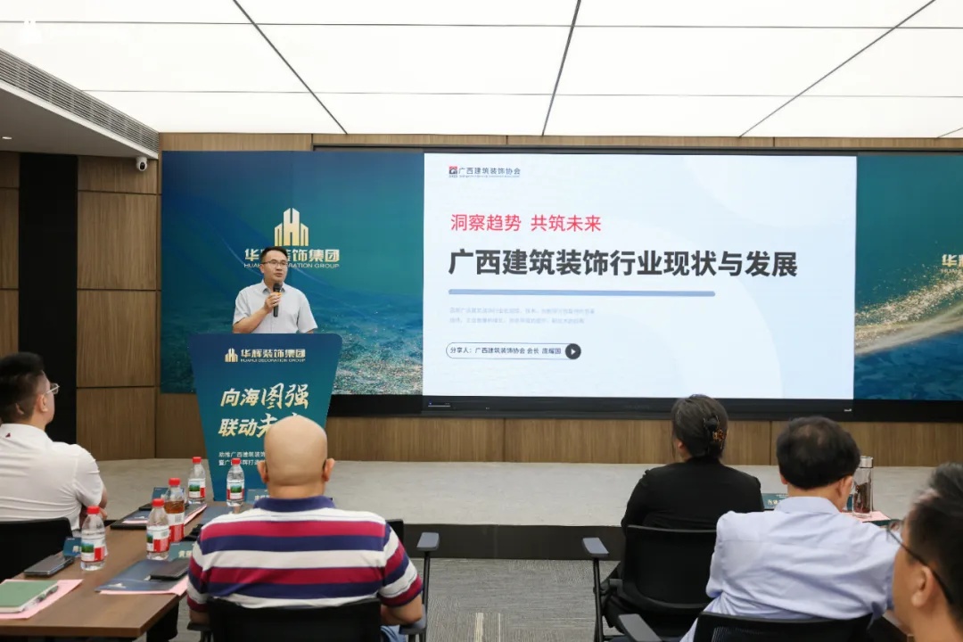 2025年6月6日,“向海圖強(qiáng) · 聯(lián)動(dòng)未來”——助推廣西建筑裝飾行業(yè)高質(zhì)量發(fā)展暨廣西華輝裝飾集團(tuán)有限公司打造共建共享合作平臺(tái)研討會(huì)圓滿落下帷幕。自治區(qū)商務(wù)廳對(duì)外經(jīng)濟(jì)合作處二級(jí)調(diào)研員張建英,廣西江蘇商會(huì)名譽(yù)會(huì)長、創(chuàng)會(huì)會(huì)長單桂林,廣西建筑裝飾協(xié)會(huì)會(huì)長龐耀國等領(lǐng)導(dǎo)出席會(huì)議,來自政府相關(guān)部門、行業(yè)協(xié)會(huì)、企業(yè)代表等眾多嘉賓齊聚一堂,共同為廣西建筑裝飾行業(yè)的未來發(fā)展出謀劃策。此次研討會(huì)由廣西建筑裝飾協(xié)會(huì)指導(dǎo),廣西江蘇商會(huì)主辦,廣西華輝裝飾集團(tuán)有限公司承辦。