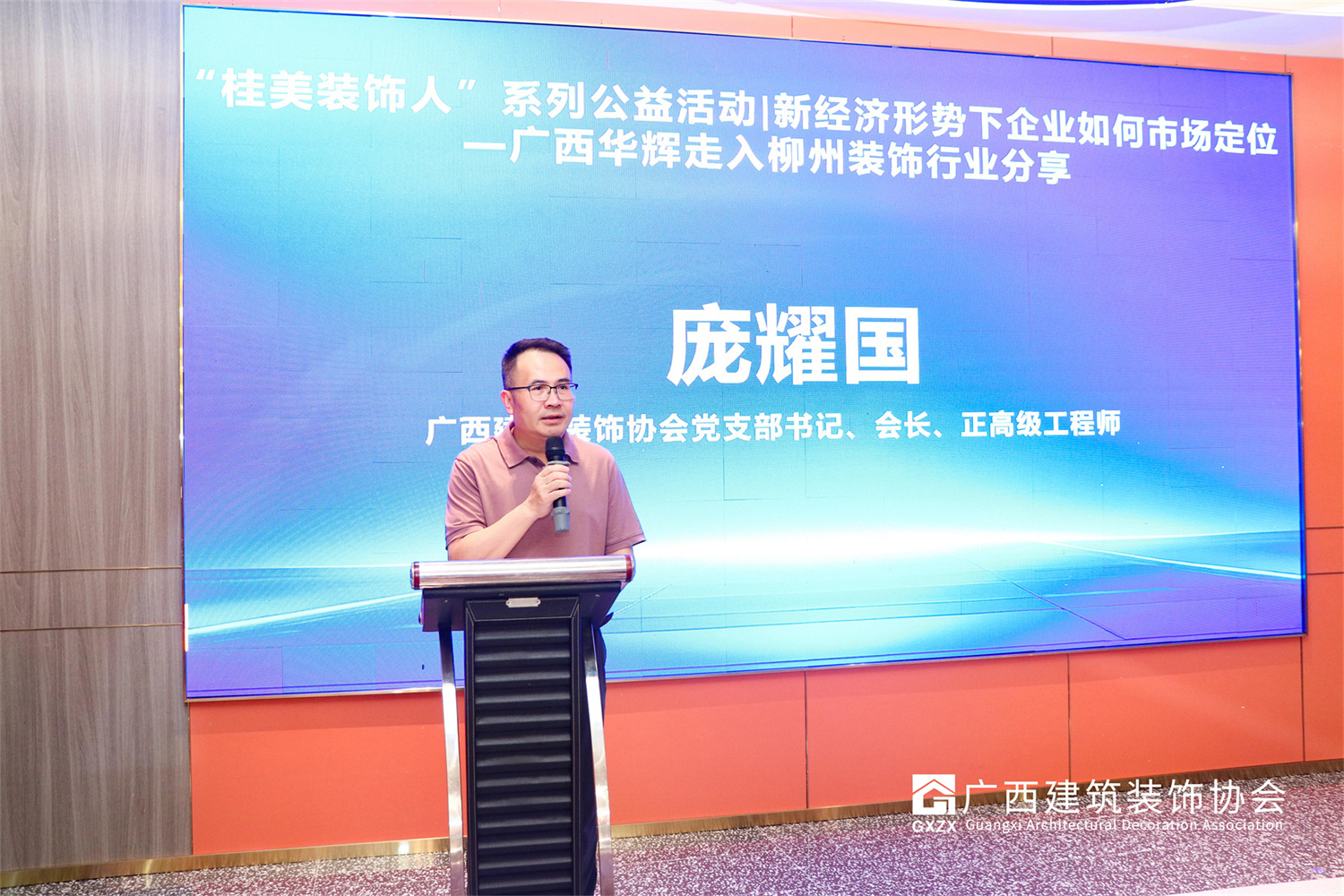 廣西建筑裝飾協(xié)會(huì)會(huì)長(zhǎng)龐耀國(guó)在致辭中,首先對(duì)柳州建筑裝飾協(xié)會(huì)、廣西華輝裝飾集團(tuán)有限公司精心配合組織本次活動(dòng)表示感謝,并向到場(chǎng)的各位柳州市行業(yè)同仁致以誠(chéng)摯問(wèn)候。他指出,近年來(lái),廣西建筑裝飾行業(yè)在綠色低碳材料應(yīng)用、裝配式施工推廣,以及數(shù)字化管理與智能化設(shè)計(jì)等領(lǐng)域,呈現(xiàn)出加快轉(zhuǎn)型升級(jí)的趨勢(shì)。他強(qiáng)調(diào),面對(duì)當(dāng)前經(jīng)濟(jì)環(huán)境變化和市場(chǎng)競(jìng)爭(zhēng)加劇,企業(yè)必須準(zhǔn)確把握自身定位,提升核心競(jìng)爭(zhēng)力。